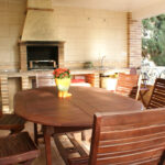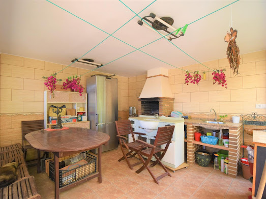 De buitenkant van de villa beschikt over een privézwembad, waar u kunt genieten van het warme klimaat van de Costa Blanca. Het perceel omvat een privétuin met diverse fruitbomen, een barbecueplek en directe toegang tot het park. De privégarage biedt voldoende ruimte voor twee voertuigen, wat zorgt voor extra gemak en veiligheid. De zuidoostelijke ligging van de villa zorgt ervoor dat alle kamers de hele dag door van uitstekend zonlicht genieten.