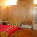 Voor de ingang van het huis is er een terras van 30 m². Het heeft een ruime en lichte woonkamer met een open haard, tv en eetgedeelte. De aparte keuken is voorzien van alle benodigde elektrische apparaten en op maat gemaakte massief kersenhouten kasten die naadloos aansluiten op het keukeninterieur. Vanuit de keuken is er toegang tot de patio voor een barbecue.